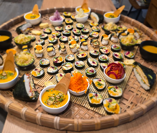 Plus qu’un simple repas, L’Art delà Fermentation propose une expérience immersive : cuisine ouverte, grandes tablées conviviales, atmosphère chaleureuse, rencontres.